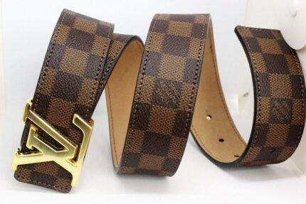 A black leather belt with an LV buckle. One of the House’s most emblematic symbols, the monogram logo is presented in contrasting Black tones for a modern feel.